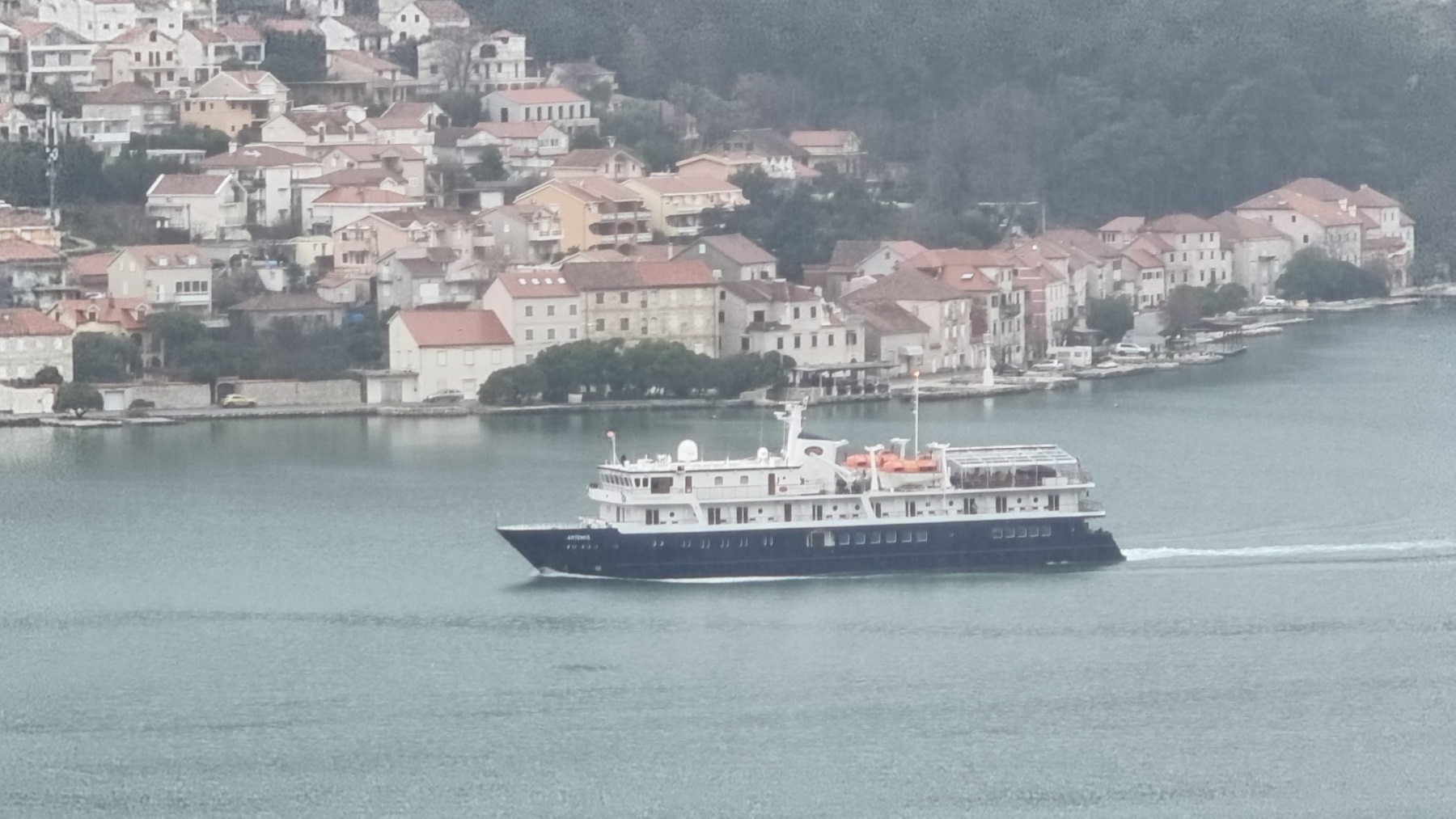 Praćen slabim snijegom, koji se zadržao po visočijim zalivskim kotama, u Kotor je jutros uplovio “Artemis”, brod u kategoriji malih putničkih kruzera.