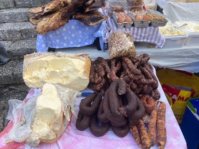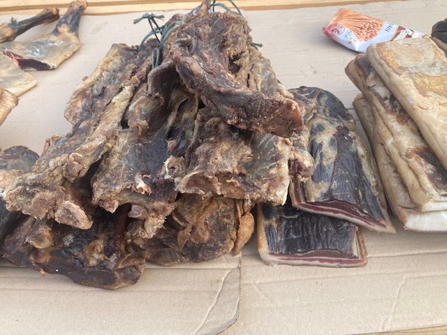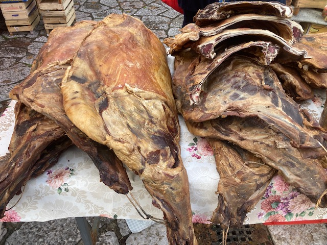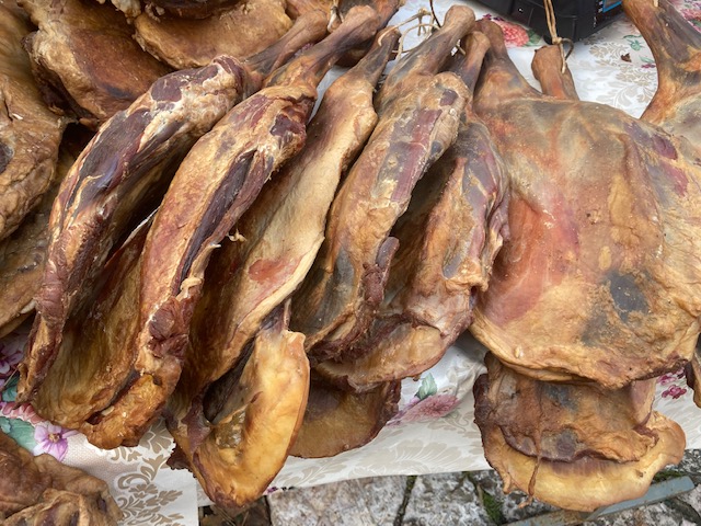 Kada su u pitanju suhomesnati proizvodi, cijena jednog kilograma mesnih kobasica i sudžuka je po 15 eura, kaštradine 10, pakovanje čvaraka 3 eura, a kilogram pršuta košta od 16 od 18 eura.