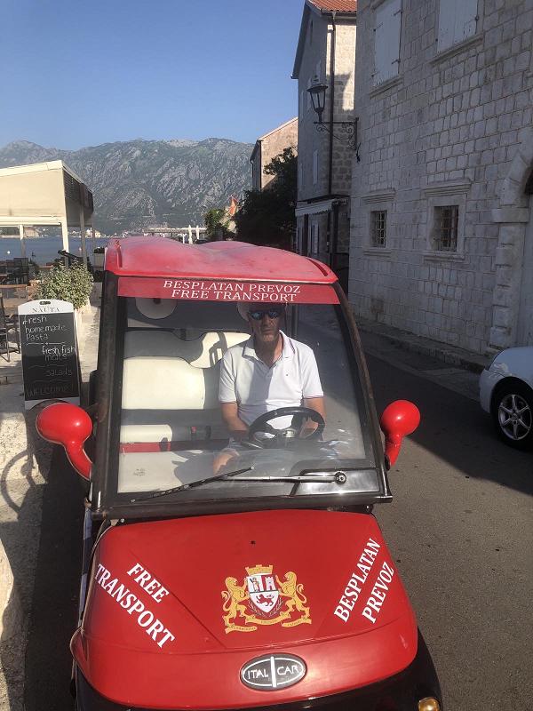 ,, Postavljene su rampe sa obje strane Perasta koje obezbjeđuje sekjuriti (security). Uz pomoć Opštine Kotor popravljena su tri stara električna vozila, tako da sa njima obezbjeđujemo besplatan prevoz od rampe do rampe, kako za građane Perasta, tako i za turiste. Ova vozila saobraćaju od 6 sati ujutro do 10 sati uveče, kako bi se obezbijedio prevoz korisnicima usluga javnog prevoza. Problem imamo sa prevoznikom “Blue line”, jer autobusi iz pravca Kotora, neće da staju putnicima na mjestima na kojima su ranije stajali, kada je bio zatvoren saobraćaj kroz Perast (usljed održavanja pojedinih manifestacija), već staju samo na vrhu Perasta ispod tvrđave Sveti krst, gdje su mještani prinuđeni da izlaze usponom od par stotina stepenica kako bi čekali autobus. To naročito predstavlja problem za starije ljude, koji često autobusom idu za Risan zbog pijace, bolje snabdjevenih prodavnica ili posjete ljekaru”- kaže Dabižinović.