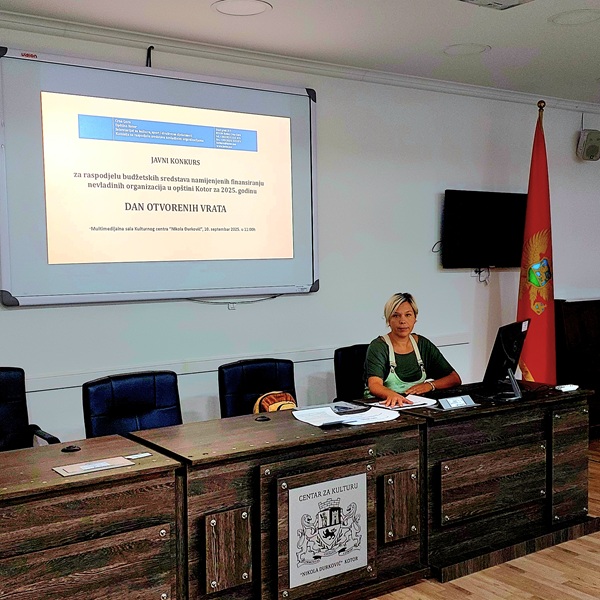 „Danas se organizuje Dan otvorenih vrata, tokom kojeg planiramo informisati nevladine organizacije o svim pitanjima od značaja za učešće na konkursu za raspodjelu budžetskih sredstava namijenjenih finansiranju nevladinih organizacija u opštini Kotor za 2025. godinu“, kazala je Katica Brkanović, savjetnica za kulturu, NVO i obrazovanje u Sekretarijatu za kulturu, sport i društvene djelatnosti.