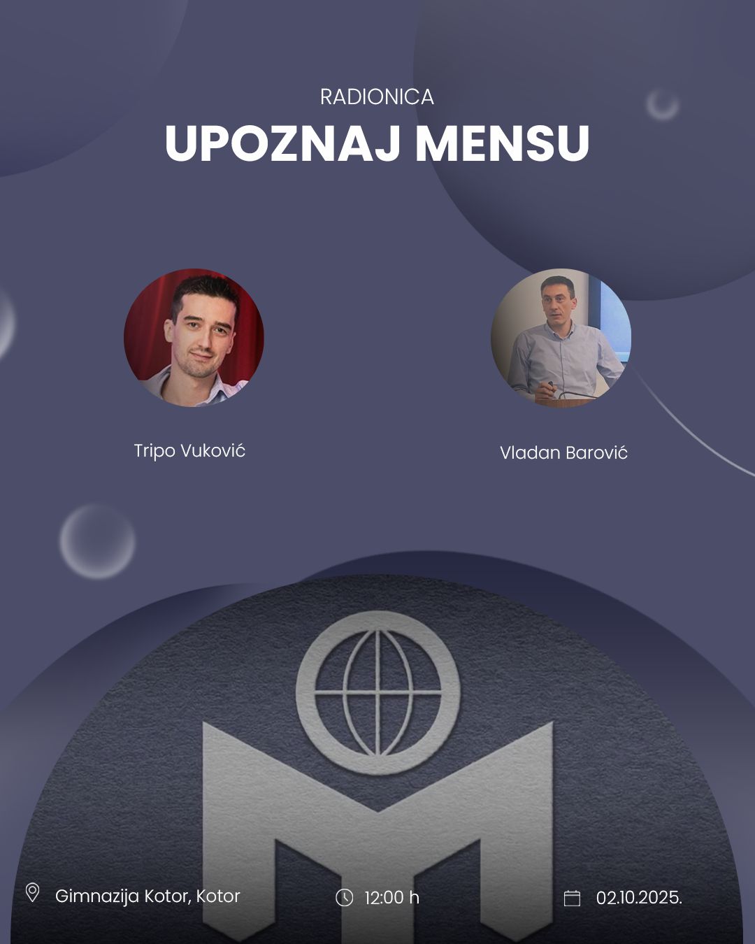 U Gimnaziji Kotor održana je radionica pod nazivom „Upoznaj Mensu“, koju su vodili članovi Mense Tripo Vuković i Vladan Barović.
