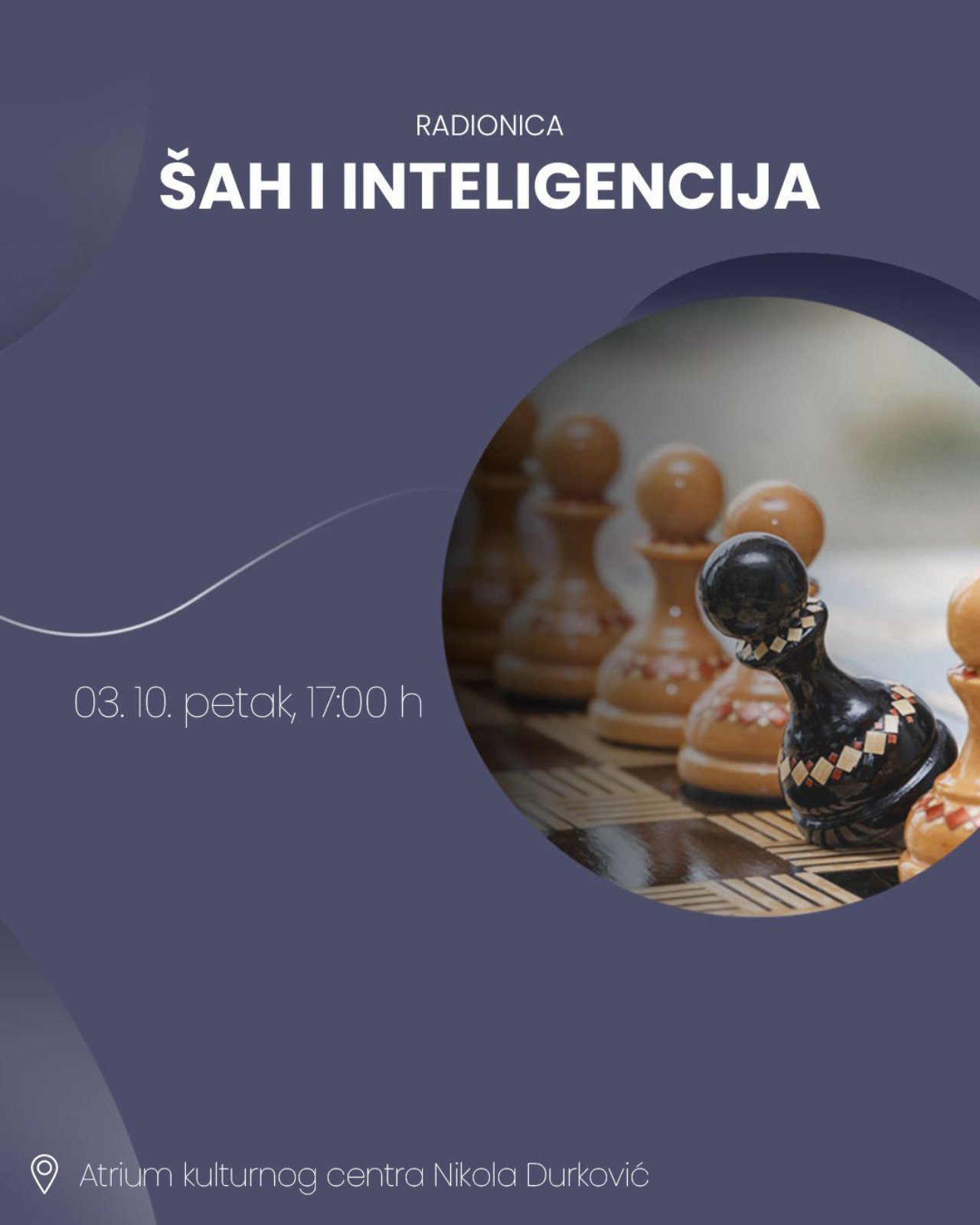 Danas, 3. oktobra od 17 sati u atrijumu Kulturnog centra „Nikola Đurković“ biće održan program „Šah i inteligencija“.