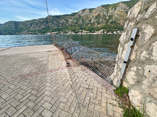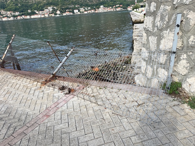 Kako bilježimo na terenu, ograda koja dijeli dobrotsku rivu od obalnog prostora kod Instituta, izvaljena je iz ležišta i nakrivljena.