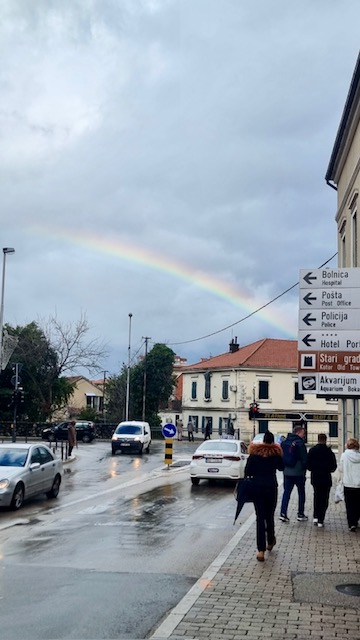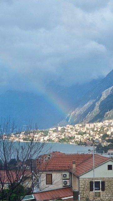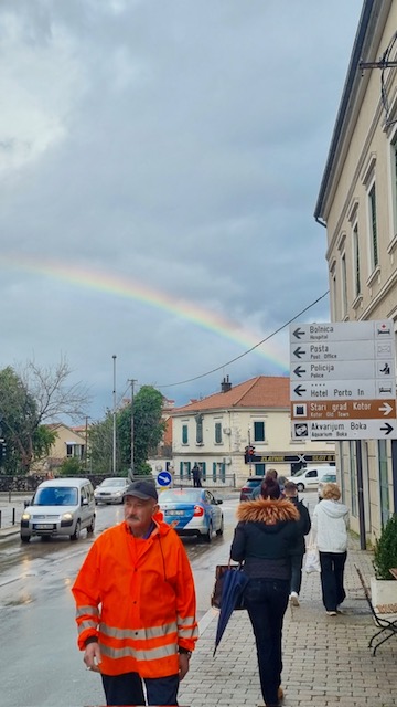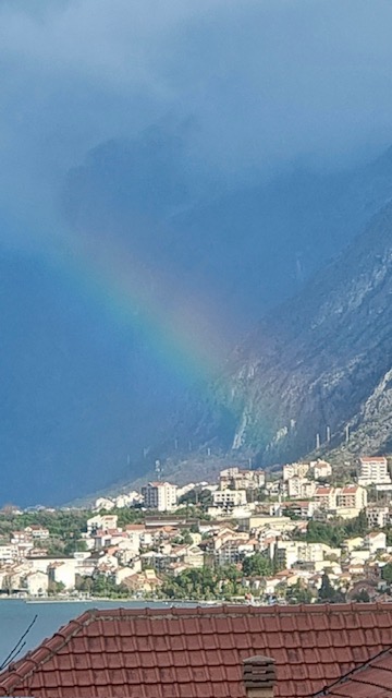 Oblačan i kišovit dan u Kotoru na trenutak je prekinula duga prekrasnih boja koja se oko 10 sati pojavila na nebu, privlačeći poglede prolaznika.