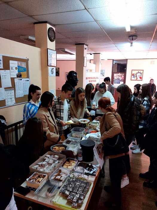 Kako su kazali, predstavnici Učeničkog parlamenta postavili su stolove u 8 sati ujutru u holu škole. Učenici i učenice su samoinicijativno pripremili razne tipove kolača: mafine, suve kolačiće, pitu s jabukama, braunije… Uz donaciju učenici i profesori su degustirali kolače u toku radnog dana.