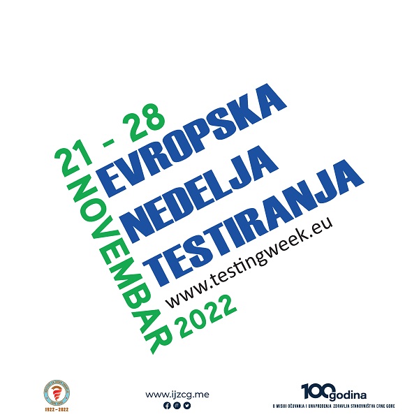 Od 21. do 28. novembra 2022. godine u Evropi se obilježava nedelja testiranja na HIV i hepatitise. Institut za javno zdravlje Crne Gore (IJZCG) se, i ove godine, pridružuje organizacijama, institucijama i ključnim liderima širom Evrope u obilježavanju ove inicijative. Cilj obilježavanja Evropske nedelje testiranja je podizanje svijesti o značaju testiranja i ranog otkrivanja bolesti, kao i ukazivanje na značaj obezbjeđivanja veće pristupačnosti testiranja onima koji su u povećanom riziku od ovih infekcija.