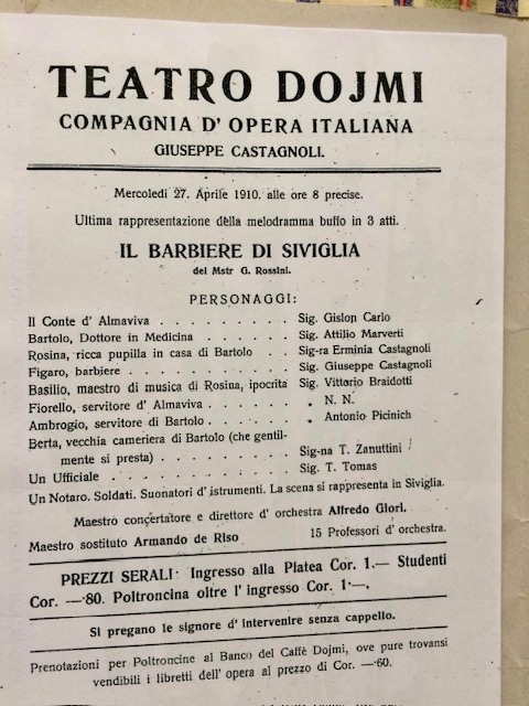 Kotorani su provodili u salama Dojmija mnoge prijatne trenutke - od svakodevnih ćaskanja do raznih igara toga vremena, pa nezaboravnih balova i drugih zabava. Ali, što malo ko zna od mlađih generacija, Dojmi je imao i pozornicu gdje su se održavale pozorišne predstave, pa čak i opere. Sačuvan je plakat o gostovanju opere iz Trsta iz 1910. g. raznih pozorišnih grupa, a o balovima u sali ili ljetnjem periodu u bašti, pokoljenja su pričala. Plesali su se valcer, tango, polka i drugi plesovi, gostovali su kvalitetni orkestri ili muzičke bande, kako se nekad govorilo.