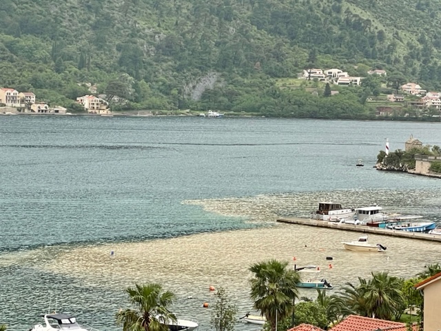 Obilne padavine, koje su danas zahvatile područje naše opštine, uzrokovale su zamućenje mora u centru naselja Dobrota, u blizini zgrade Instituta za biologiju mora.