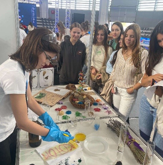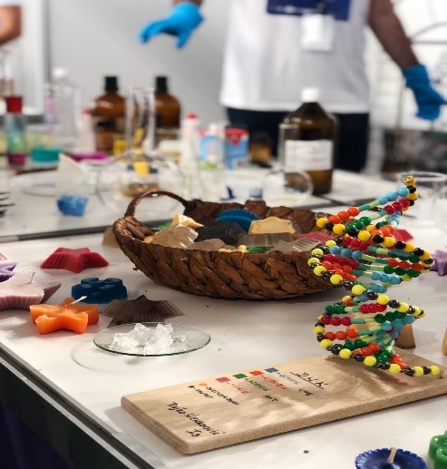 Učenici su pripremili mnoštvo zanimljivih eksperimenata: ,,Duha iz boce'', ,,Manganovu dugu'', ,,Nevidljivo-vidljivo'', ,,Čarobno mlijeko'', ,,Hemijski koktel'', ,,Slonovu pastu'' i mnoge druge. Osim eksperimenata, gledaoci su imali priliku da vide sve što proizvodimo u našoj maloj laboratoriji: sapune, svijeće, kristale, parfeme, ali i da čuju predavanja vezana za njihov nastanak. Na štandu su se našli i herbarijumi, kao i modeli DNK-a koje su takođe kreirali učenici na časovima biologije. Prisutni su mogli čuti kako se prave i koliko dugo priprema herbarijuma traje, a imali su priliku da se upoznaju i sa mikromolekulima koji čine osnovu živog svijeta, čemu su odlično poslužile makete DNK-a.