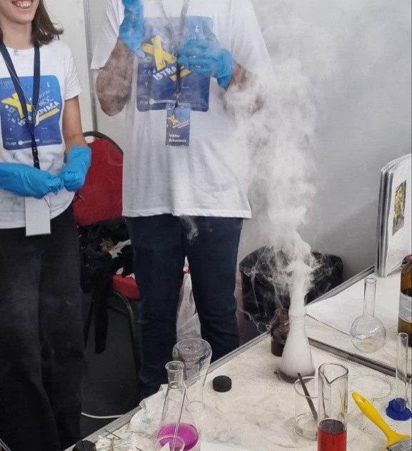 Istraživači širom zemlje okupili su se i ove godine kako bi publici pokazali mnoštvo eksperimenata, radionica i predavanja i tako ih bolje upoznali sa veličanstvenim svijetom nauke. Među učesnicima našla se i naša škola - JU Gimnazija Kotor. Predstavnici kotorske Gimnazije bili su učenici trećeg razreda - Katarina Jelić i Viktor Brkanović, zajedno sa svojim mentorima, profesoricama hemije Ružom Soldo i Žanom Sošić Bošković.