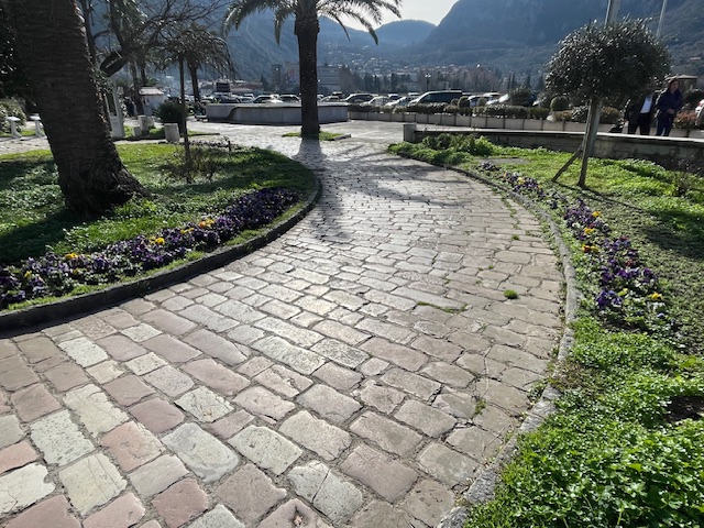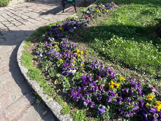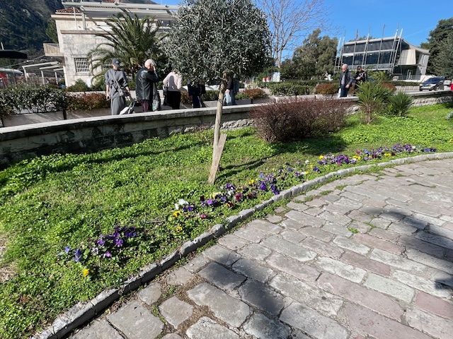 Javnu zelenu površinu sa obije strane staze sada krasi cvijeće raznih boja, a dominira ono ljubičaste boje.