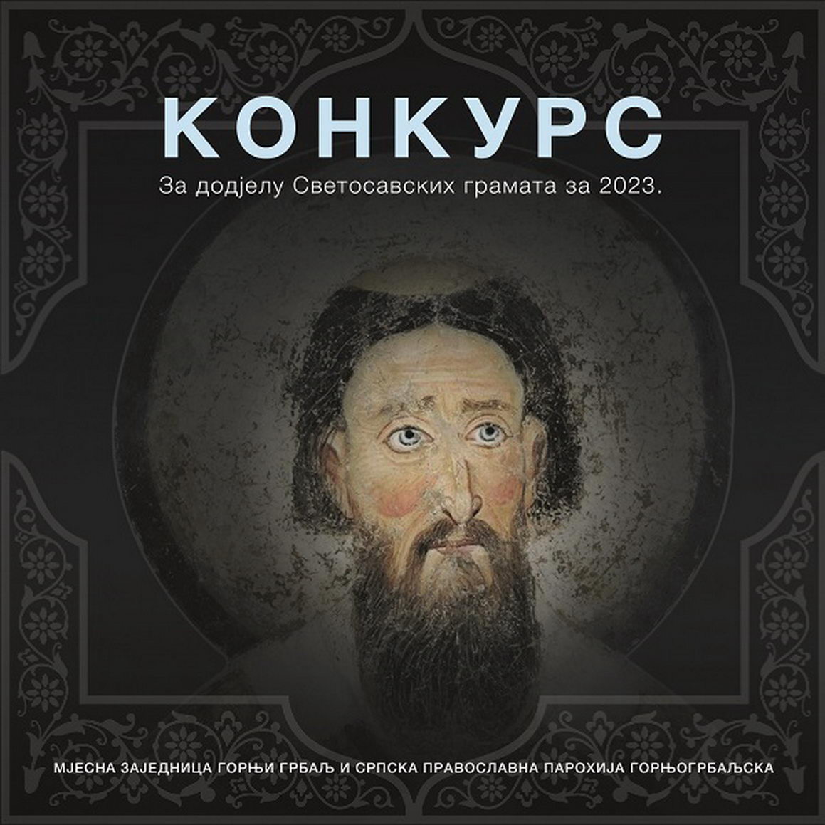 Na osnovu odluke MZ Gornji Grbalj br: 0209-137/7 od 26. 08. 2022. godine, Mjesna zajednica Gornji Grbalj u saradnji sa Srpskom pravoslavnom parohijom gornjogrbljaskom objavljuje K O N K U R S za dodjelu Svetosavskih gramata za 2023. godinu, a koje se dodjeljuju djeci koja žive na teritoriji Grblja, kao i djeci koja makar preko jednog roditelja vode porijeklo iz Grblja.