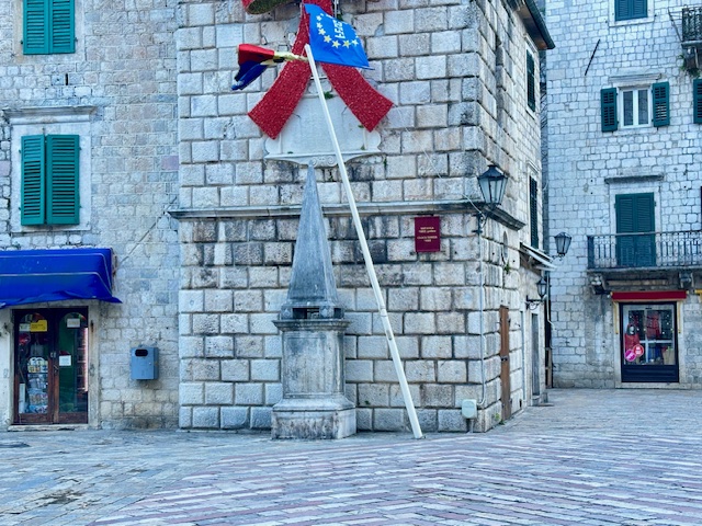 NAKRIVLJEN STUB NA KOJEM SU KARNEVALSKE ZASTAVICE