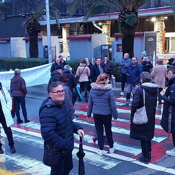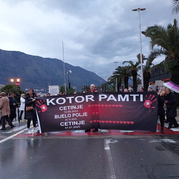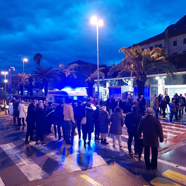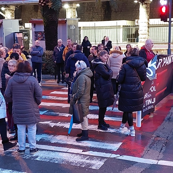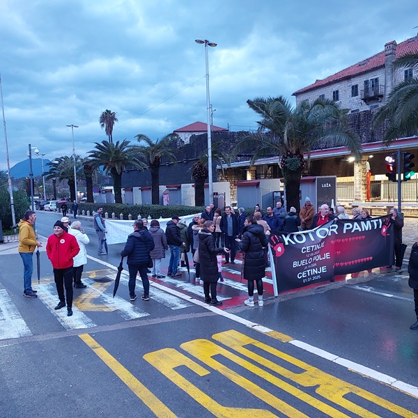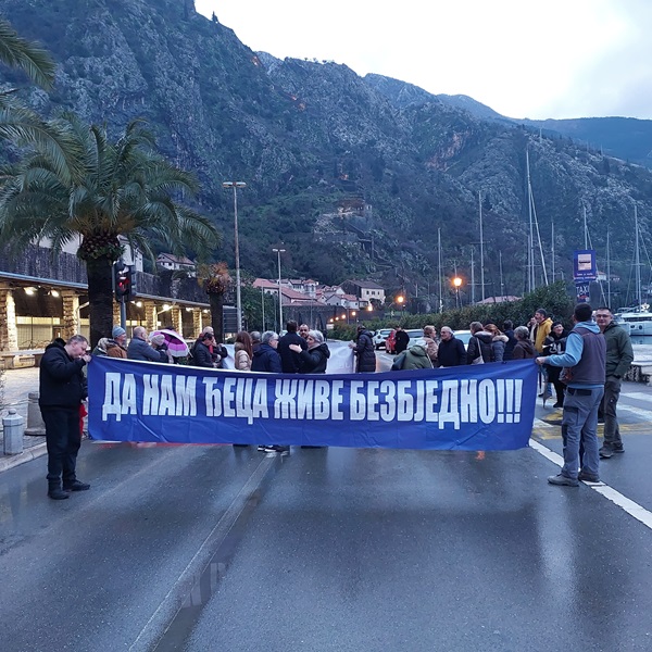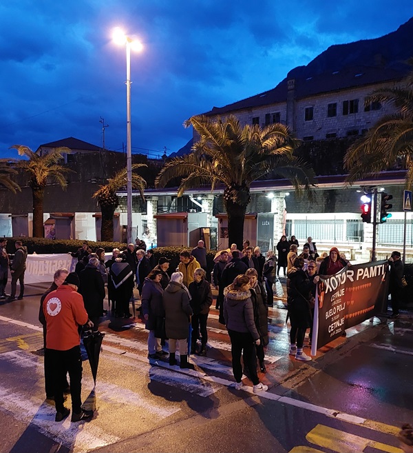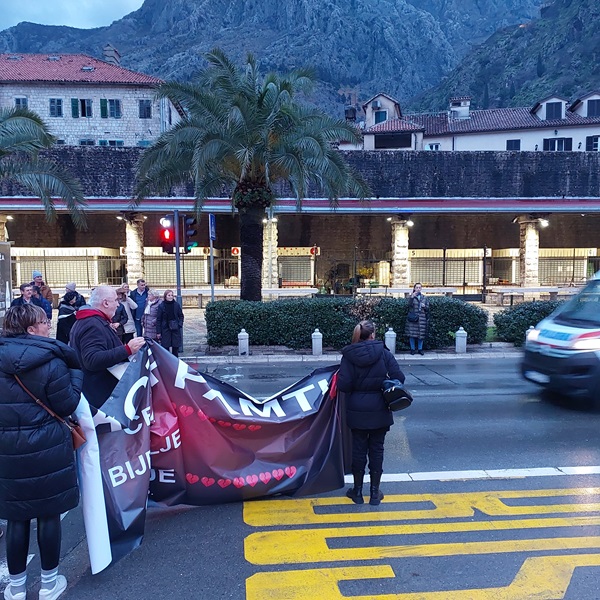 Grupa građana/ki Kotora, kao i prethodnih dana, sa početkom u 17:26 blokirala je magistralni put u trajanju od 25 minuta na pješačkom prelazu kod pijace.
