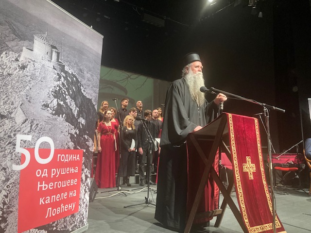 Rušenje lovćenske kapele, gaženje Njegoševog amaneta i skrnavljenje njegovog groba je zli čin nasilja i znak velike nesreće za Crnu Goru. Sa druge strane, kada pogledamo kao hrišćani i vjerujući ljudi, možemo reći da se kapela žrtvovala, da se na nebo vaznijela, da ona živi novim životom i djeluje sa neba. Prvi znak njenog novog života bila je prčanjska kapela Svetog Petra koju je podigao blaženopočivši otac Momo Krivokapić. On je jedan od rijetkih sveštenika Mitropolije crnogorsko-primorske koji je u potpunosti podržavao blaženopočivšeg mitropolita Danila Dajkovića, u njegovoj neravnopravnoj borbi za očuvanje kapele i amaneta Njegoševog. Hvala Bogu, ipak nisu bili sami, veliki broj profesora, uglednih intelektualaca, umjetnika, pjesnika, podržao je našu crkvu u toj borbi i stali su na branik kapele. Mi, kada njegujemo sjećanje na lovćensku kapelu, i kada slavimo njeno novo dejstvo kroz crkvu na Prčanju, gledamo na ostalih 20 kapela koje su podignute po Crnoj Gori i širom srpskih zemalja i dijaspore, mi dakle blagodarimo i osjećamo se počastvovanim što smo u društvu onih koji su u vrijeme komunističkog terora bili na strani istine, na strani crkve, Njegoša i njegove zavjetne kapele. Izvršen je dakle zli čin nasilja, ali moralna pobjeda je bila na strani crkve i svih oni koji su stali u odbranu kapele. Ta neravnopravna borba u tom vremenu, bila je veoma važna, jer je bila najjači otpor komunističkoj vlasti poslije 1945. godine, ali ta borba za nas je i danas veoma važna. Borba za crkvu od tog vremena ne prestaje , ako dublje gledamo od doba Isusa Hrista našeg spasitelja, sva istorija je u znaku borbe za crkvu. Slava Bogu što smo i večeras ovdje sabrani u to ime, u ime svetinje, časti, imena, obraza i pamćenja. Daj Bože da nas sjećanje na Njegoša, njegov amanet i djelo, sabira i snaži da idemo putem Hristovim, putem Svetog Save, Svetog Petra Cetinjskog, Svetog Vasilija Ostroškog i Svetog Petra Drugog Lovćenskog tajnovidca”- poručio je mitropolit Joanikije.