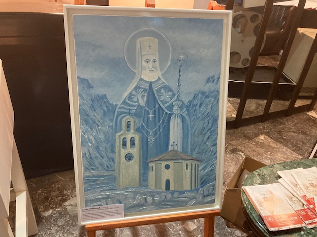 U holu Kulturnog centra bili su izloženi radovi akademskih slikara i vajara koji su se svojim umjetničkim izrazom pobunili rušenju kapele na Lovćenu, i koji se čuvaju u riznici Srpske pravoslavne crkvene opštine Kotor.