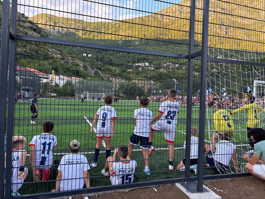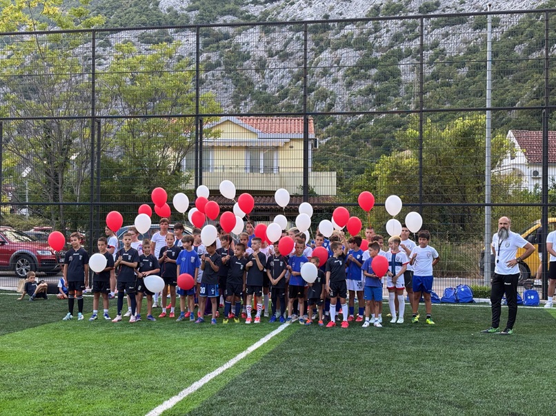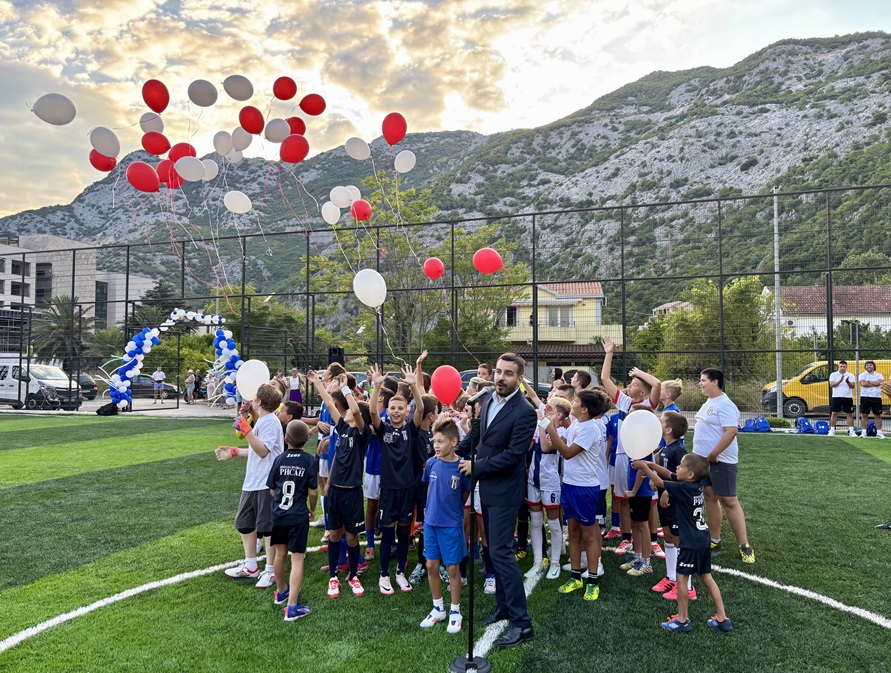 Nakon govora, Jokić je pozvao članove Škole fudbala „Risan“ da simbolično puste crvene i bijele balone u znak otvaranja terena.