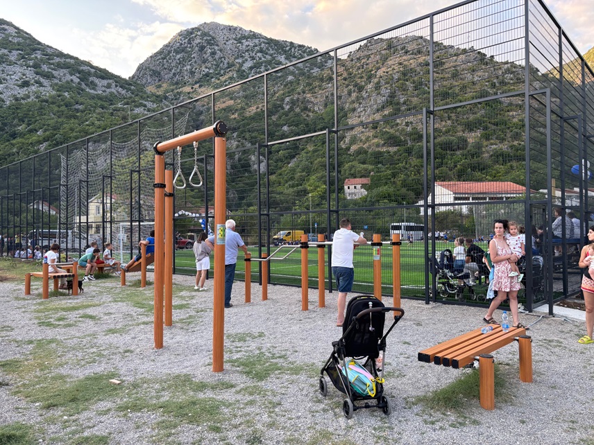 Projekat čija vrijednost iznosi oko 430 hiljada eura je realizovao Sekretarijat za investicije Opštine Kotor. Osim terena, izgrađena je i visoka zaštitna ograda, metalna tribina kapaciteta 160 mjesta, kao i moderna teretana na otvorenom – sve sa ciljem da se omoguće uslovi za rekreativno i profesionalno bavljenje sportom za sve generacije.
