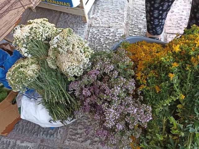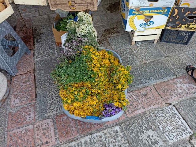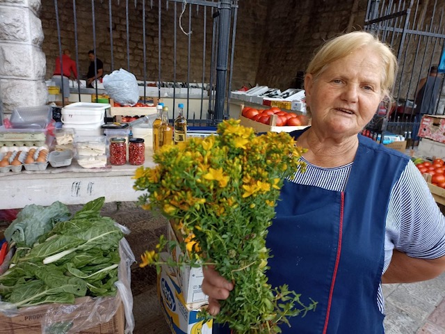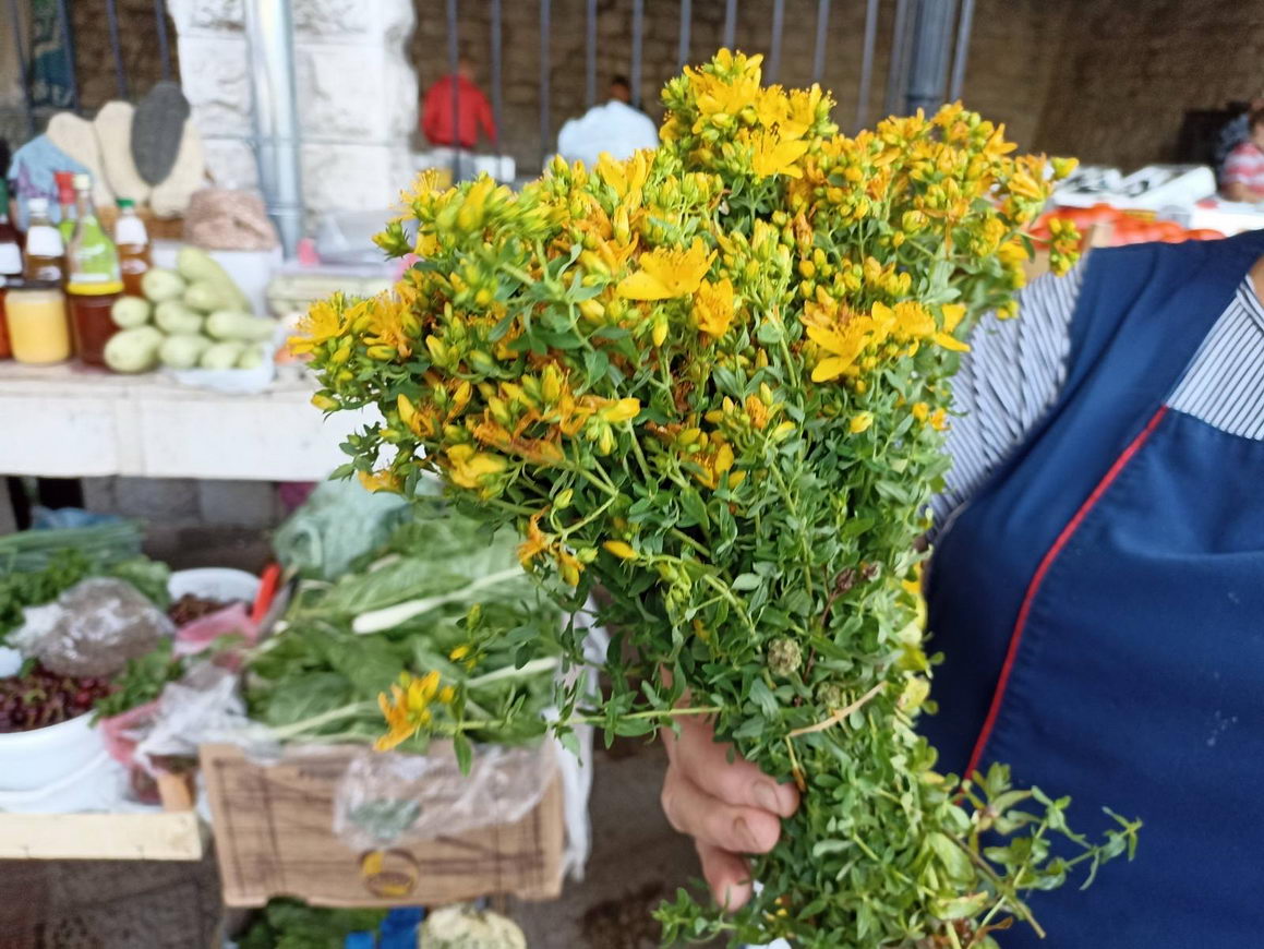 Domaćice iz Nikšića ponudile su više vrsta ljekovitog bilja, kantarion (gospina trava), hajdučku travu (stolisnik) i vranilovu travu, odnosno divlji origano. Manji buketi su 1 euro, a veći euro i po.