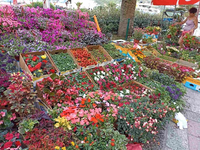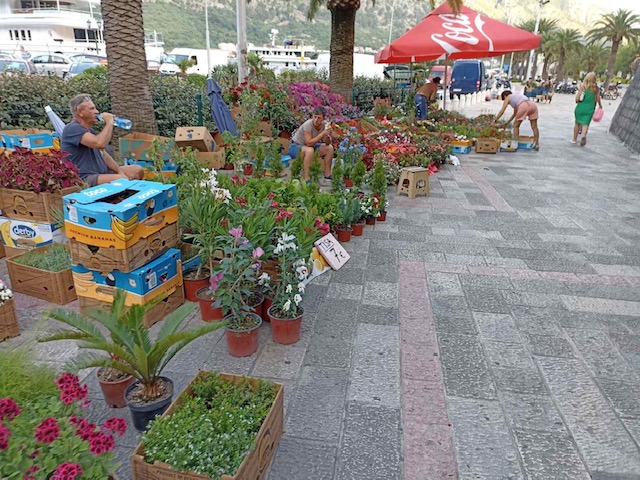 Na pijaci srijećemo prodavce rezanog i saksijskog cvijeća. Petunije im, kažu, prolaze najbolje. Dugo mogu biti izložene suncu, divan su ukras ljetnjim baštama i konobama duž zaliva. Napominju da se ne smiju previše zalivati, a cijena im je 5 eura.