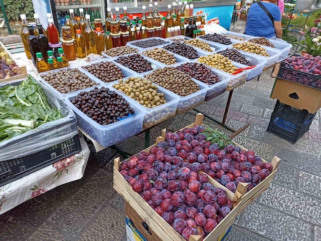 Pod markat ovoga jutra bilježimo raznovrsnu ponudu voća, povrća, mliječnih proizvoda, maslinovog ulja i mesnih prerađevina.