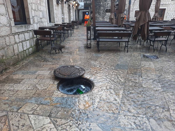 Kako nam je kazao Rato Brajković iz Direkcije za uređenje i izgradnju Kotora radi se o uobičajenom problemu izlivanja morske vode zbog plime.