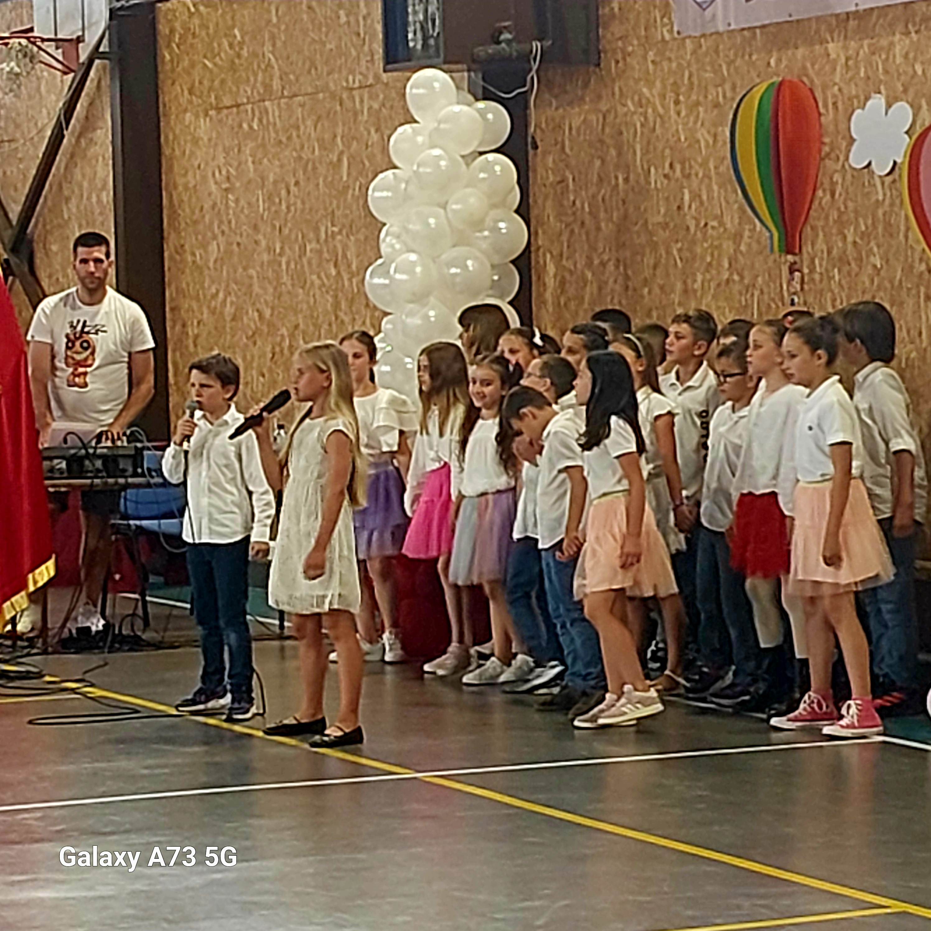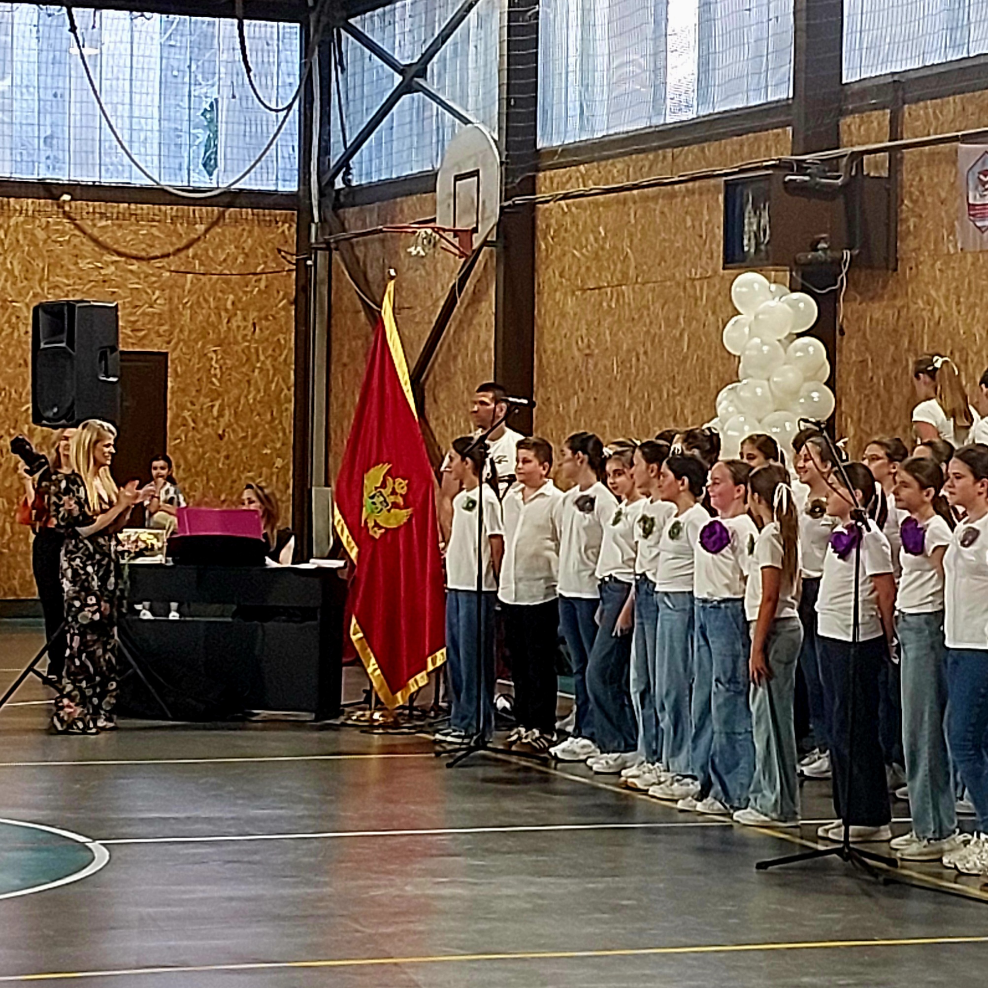 Himnu Crne Gore izveo je školski hor na čelu sa profesoricom muzičke kulture Vesnom Ivanović, u klavirskoj pratnji profesorice Dušice Ćetković.