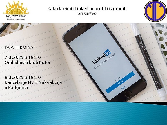 Radionica "Kako kreirati LinkedIn profil i izgraditi prisustvo" pruža mladima važne vještine za izgradnju profesionalne mreže i online identiteta. U današnjem digitalnom dobu, LinkedIn je ključna platforma za povezivanje sa poslodavcima i kolegama, a pravilno kreiran profil može otvoriti brojne profesionalne prilike. Kroz radionicu, učesnici će naučiti kako da optimizuju svoj profil, razviju strategije za umrežavanje i koriste LinkedIn kao alat za karijerni napredak. Kroz ovaj trening NVO Naša akcija i Omladinski tim Tivat žele da pruže priliku mladim generacijama da se pripreme za konkurentno tržište rada i steknu neophodne digitalne vještine, najavljuju iz NVO Naša akcija.