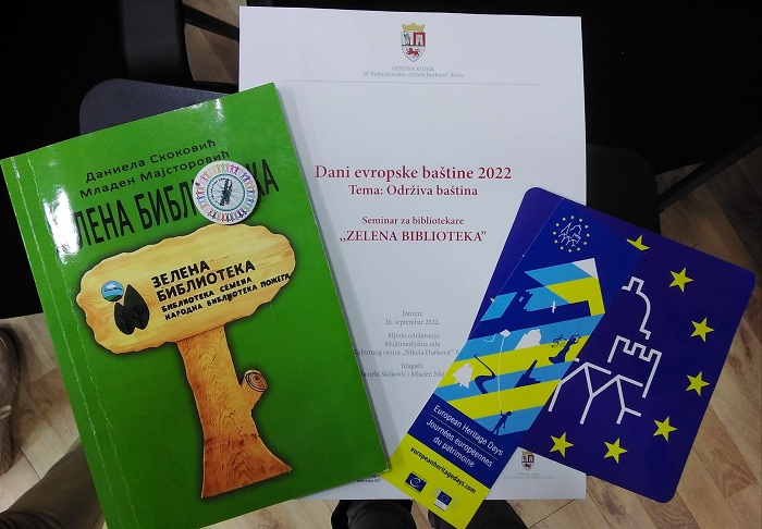 Povodom obilježavanja Dana evropske baštine 2022, koji se održavaju na temu ,,Održiva baština'', JU Kulturni centar „Nikola Đurković“ Kotor, Gradska biblioteka i čitaonica, a pod pokroviteljstvom Ministarstva kulture Crne Gore organizovala je seminar za bibliotekare ,,Zelena biblioteka''.