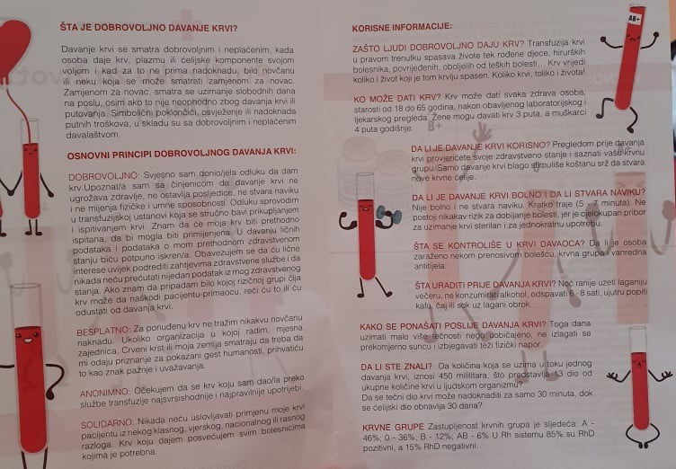 Volonterke naše organizacije će dijeliti informativno-propagadni materijal u kojem su informacije i odgovori na pitanja: