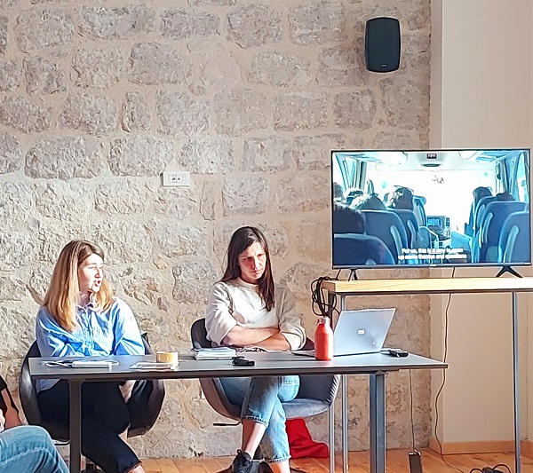 Katerina Duda je predstavila svoj umjetničko – istraživački rad inspirisan sezonalnošću turizma u Dubrovniku, koji su činile fotografije grada prije, nakon i u toku najveće posjete gostiju, te izloženi citati prikupljeni prilikom vođenja tematskih razgovora sa mještanima i ankete u kojoj se čuo glas naroda.