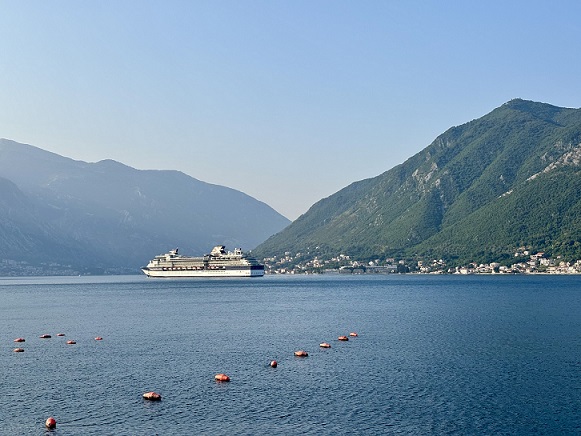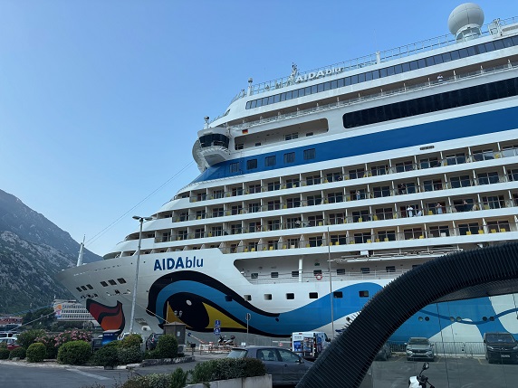 Prema informaciji iz AD "Luka Kotor", kruzer “AIDAblu”, sa 2.011 putnika na na vezu ostaje do 14 sati, kada isplovljava za Krf.