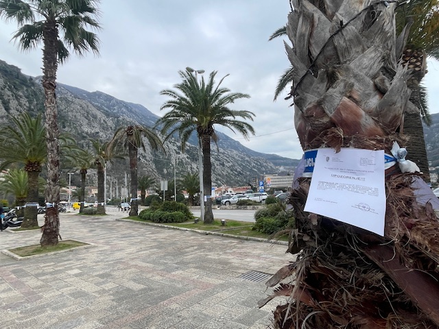 Ovo Upozorenje postavljeno je na stablima palmi na Rivi.