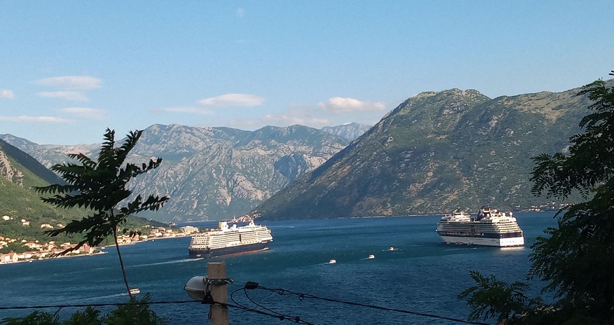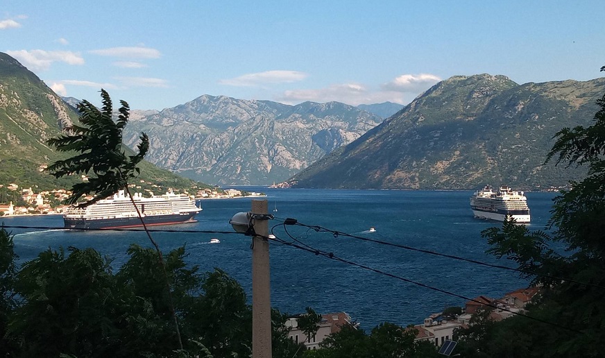 Kruzer Oosterdam (285.24 x 32.25 m) kompanije Holland America Line, koji je doplovio iz Dubrovnika, jutros je zbog jakog sjevernog vjetra očigledno bio primoran na zahtjevan manevar koji je uključio okretanje u uskom dijelu zaliva i odlazak u sigurne vode na sidrištu ispred Orahovca.