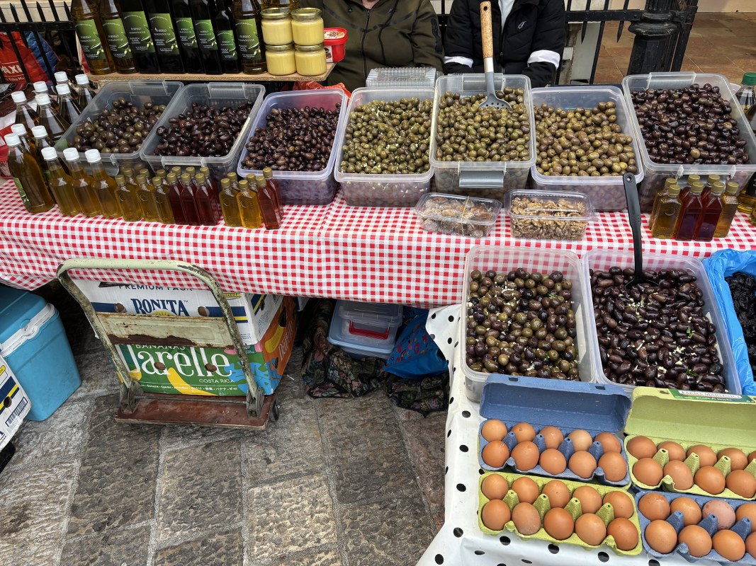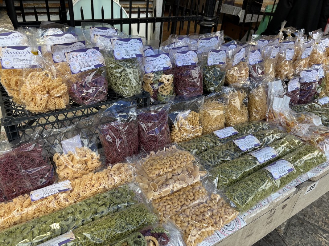 Na pijačnim tezgama mogu se pronaći i ruštule, priganice, krofne, proje i pite. Domaći hleb se prodaje po cijeni od 1 euro, a pakovanja kolača za 3,5 eura.