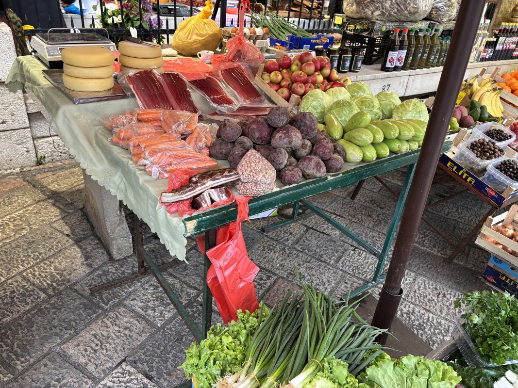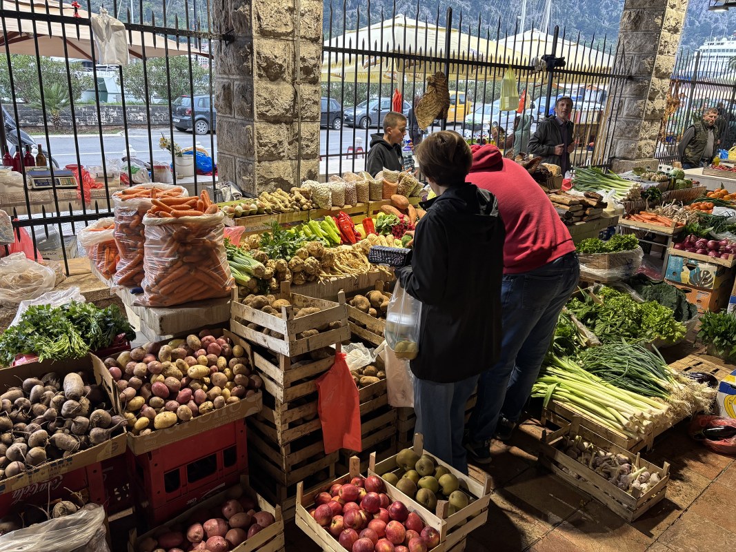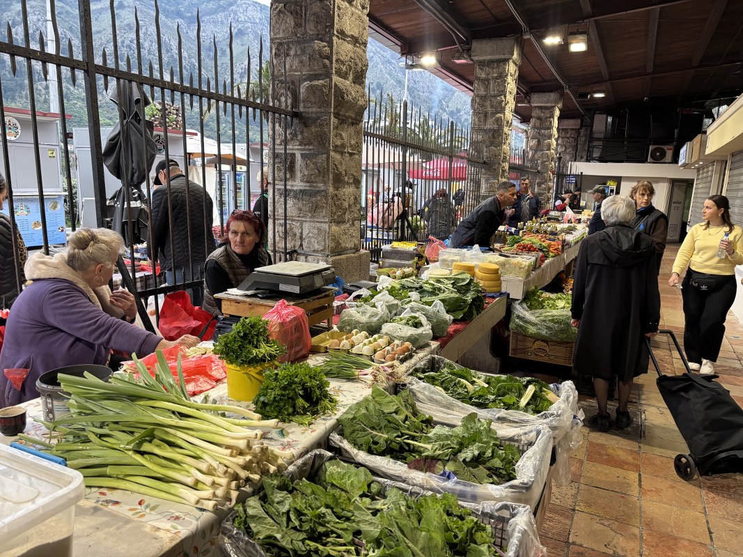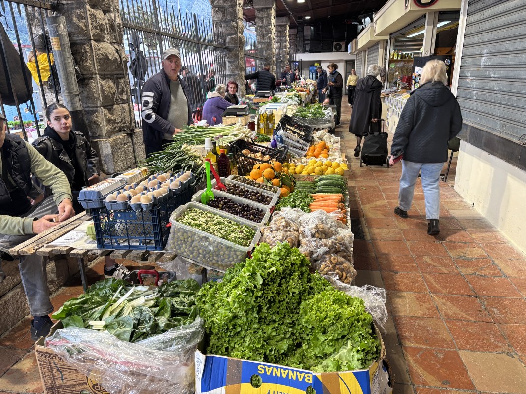 Pijačni dan u Kotoru protiče uobičajeno, a kako se može vidjeti na fotografijama, dominiraju verdura i sezonsko voće.