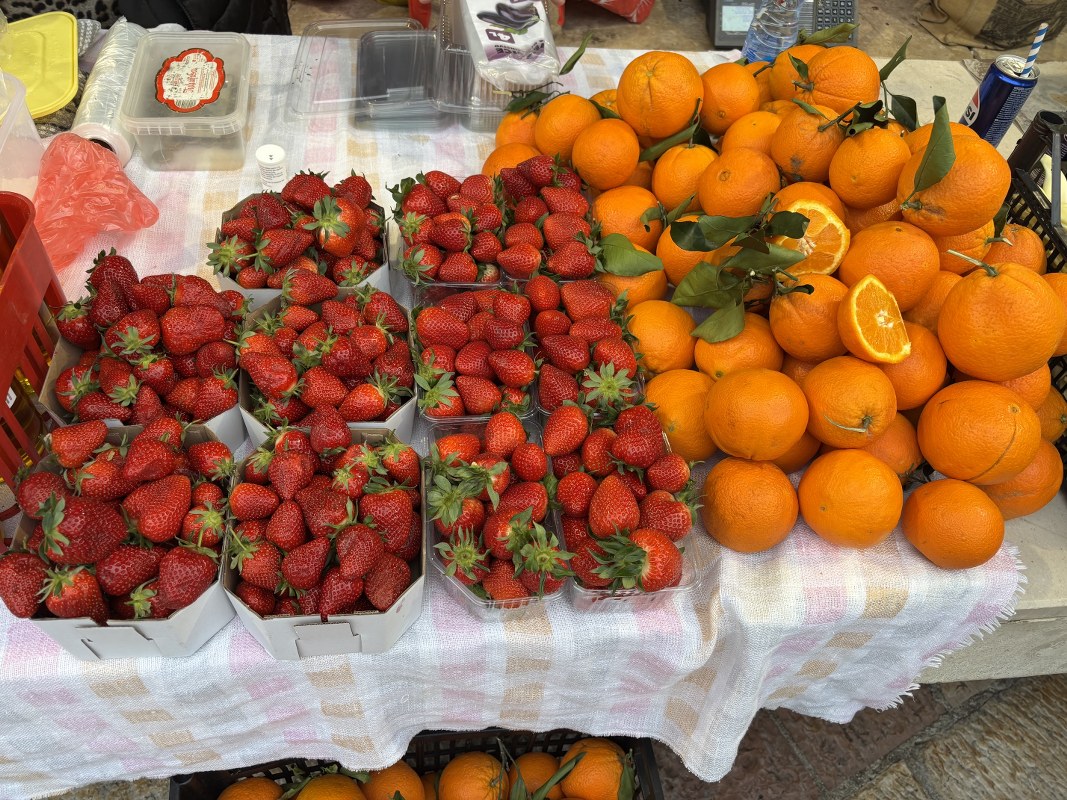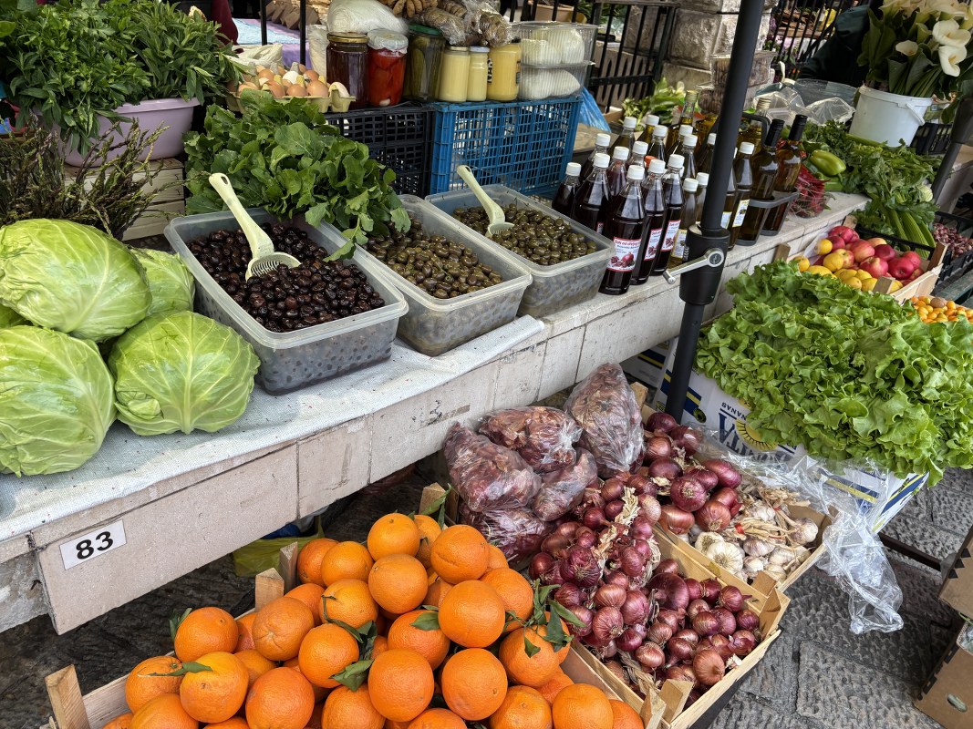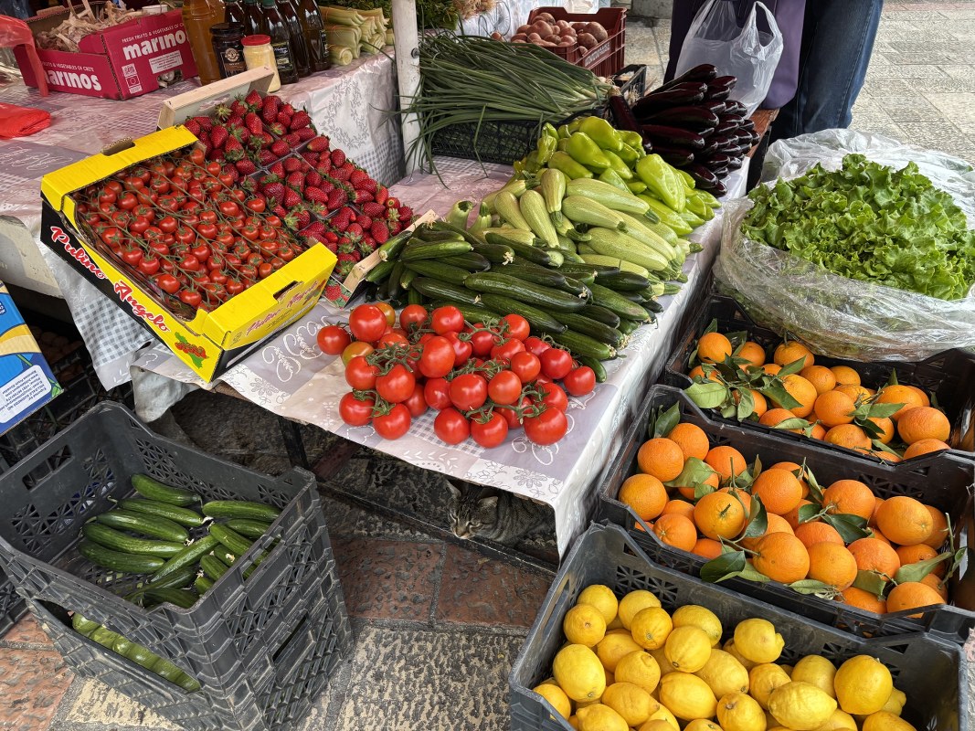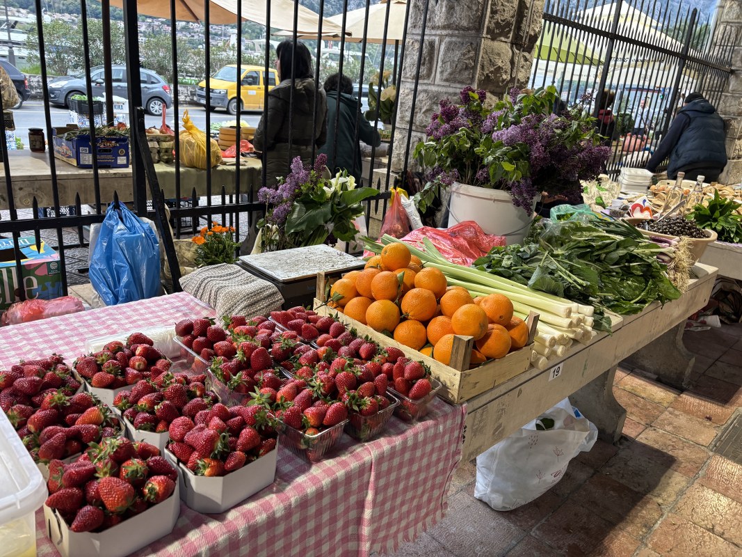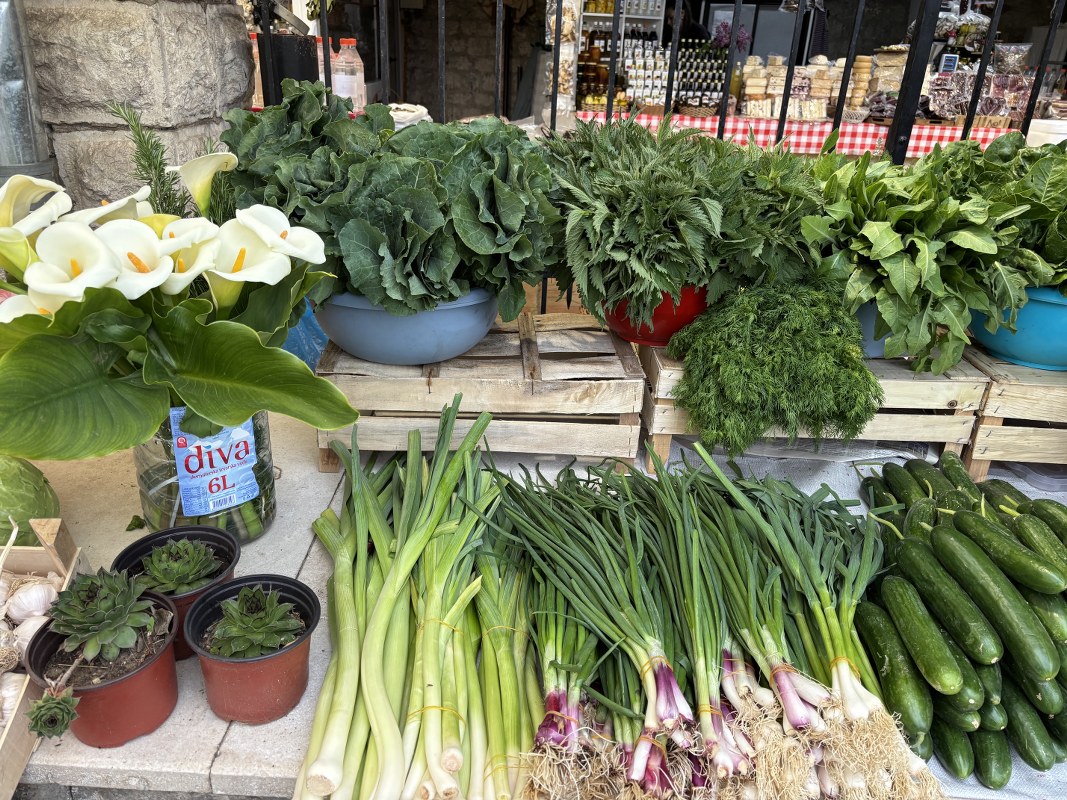 Pijačni dan u Kotoru protiče uobičajeno, a kako se može vidjeti na fotografijama, dominiraju verdura i sezonsko voće.