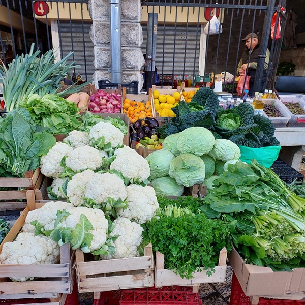 Na tezgama su se mogli pronaći karfiol, spanać, brokoli i patlidžan po 4 eura za kilogramu, a zelena salata, raštan, blitva i paprika šilja po 3 eura- Kilogram domaće krtole košta od 1 do 1,5 eura,