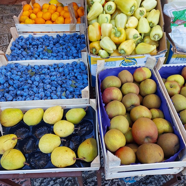 Ponuda sezonskog voća bila je raznolika i primamljiva: mandarine su se prodavale po 2,5 do 3,5 eura po kilogramu, limun je 3 eura, bundeva košta 2 eura, šipak po 1,5 do 2 eura. Prodaje se i u zrnima, a kutija od 600 grama košta 4 eura. Kilogram kostanja košta 5 eura, dok je vijenac suve smokve od 6 do 8 eura. Orasi se prodaju po cijeni od 15 eura po kilogramu.