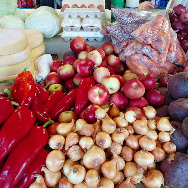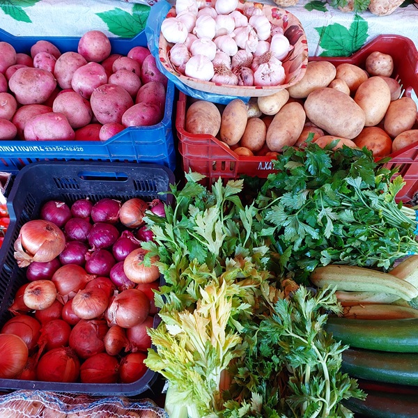 Pijaca je bila bogata i svježim povrćem: domaći paradajz je 4 eura, krastavci i paprike prodavali su se po 2 do 3 eura za kilogram, tikvice su bile između 2 i 3 eura, a boranija je 5 eura. Kilogram crvenog luka košta od 2 do 3,5 eura, dok je česan – 10 eura po kilogramu.