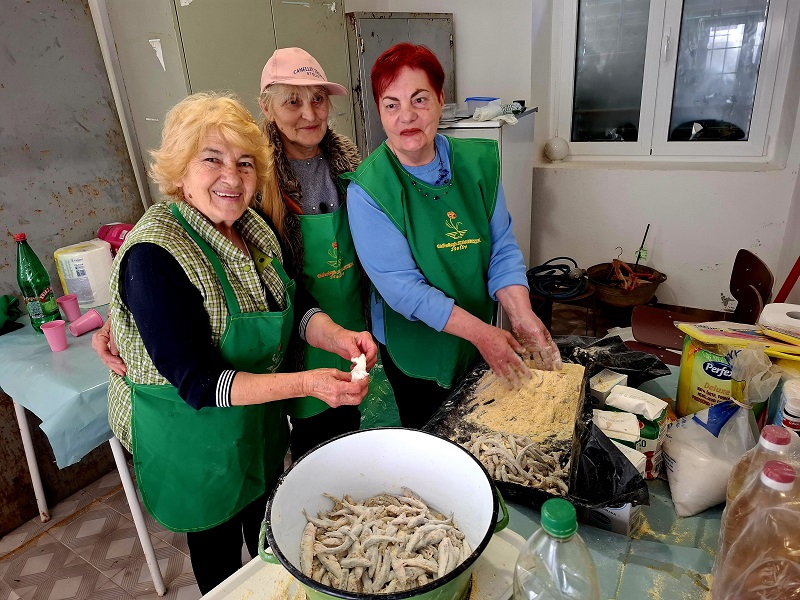 Okupljeni/e su uživali/e u degustaciji prženih sarduna i gavica koje su s posebnom pažnjom pripremile i gostima /šćama poslužile vrijedne stolivske domaćice.