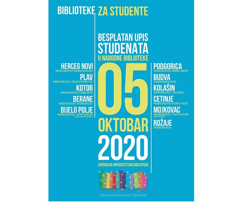 Gradska biblioteka i čitaonica Kotor se i ove godine priključuje akciji BIBLIOTEKE ZA STUDENTE, koju organizuje Centralna univerzitetska biblioteka (CUB) Univerziteta Crne Gore povodom oblježavanja Nacionalnog dana podizanja svijesti o bibliotekama.