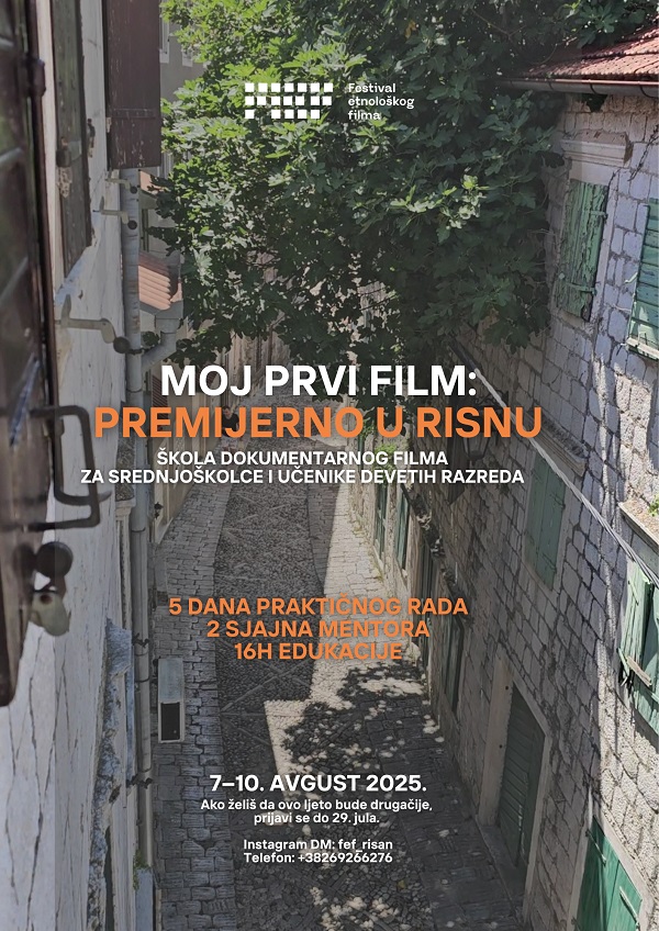 Radionica je dio projekta „Kultura u kadru – objektivom kroz nasljeđe“, koji se realizuje u okviru IV Festivala etnološkog filma – FEF Risan 2025, a ima za cilj da kroz rad na digitalnom video sadržaju djecu i mlade nauči osnovama filmskog izraza, ali i da ih motiviše da pažljivije opažaju kulturnu baštinu oko sebe i razvijaju svijest o njenoj vrijednosti i očuvanju. Nakon završenih parktičnih i teorijskih vježbi, polaznici će imati zadatak da kreiraju svoj video sadržaj koji će se prikazati pred publikom tokom centralnog festivalskog programa u septembru.