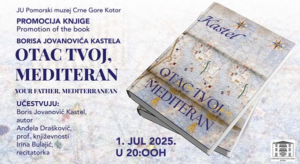 Promocija knjige poezije Otac tvoj, Mediteran Borisa Jovanovića Kastela održaće se u Pomorskom muzeju Crne Gore, u Palati Grgurina, 1. jula u 20 sati.