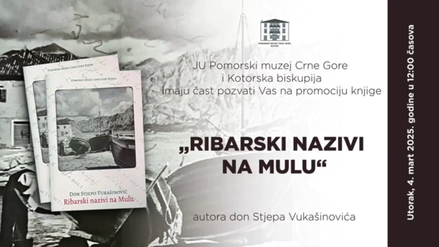 Publikacija “Ribarski nazivi na Mulu”, autora don Stjepa Vukašinovića, biće promovisana sjutra (u utorak, 4. marta) u 12 sati u Pomorskom muzeju Crne Gore.