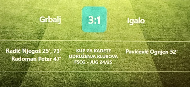 Kadeti Grblja osvojili su Kup Udruženja klubova Jug FSCG,pošto su juče u finalu, na pomoćnom terenu Arsenala u Tivtu, savladali Igalo 3-1.