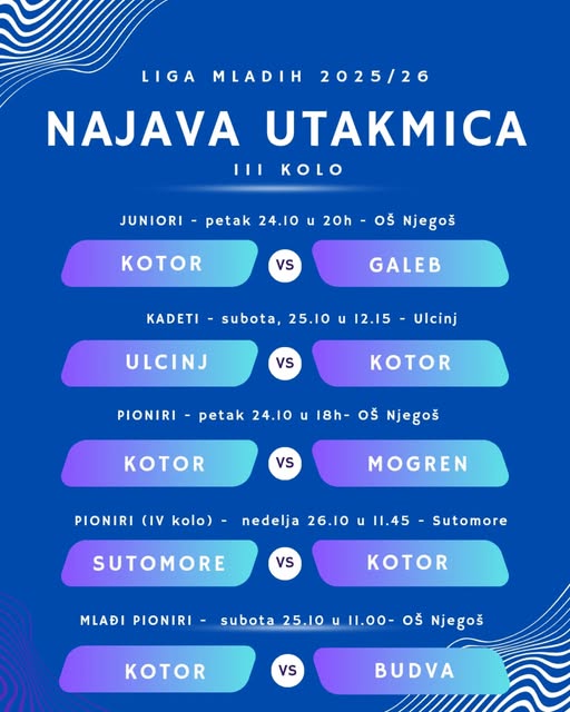 KK KOTOR-NAJAVA UTAKMICA ZA VIKEND 24.-26.OKTOBAR
