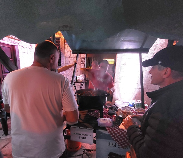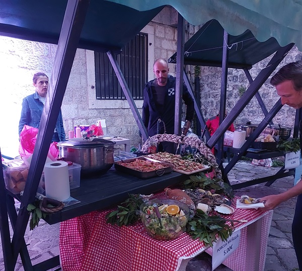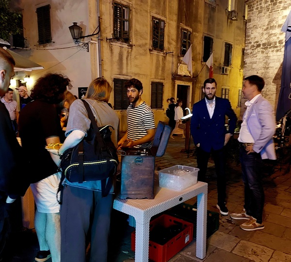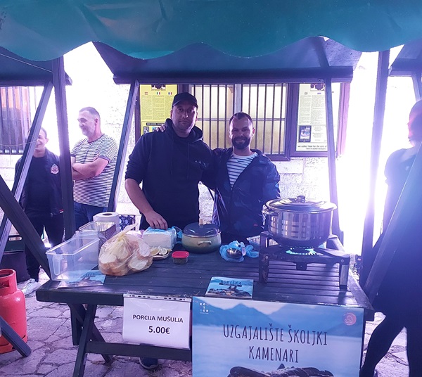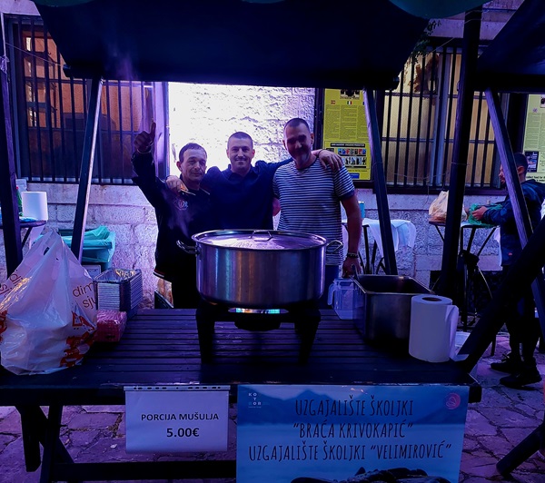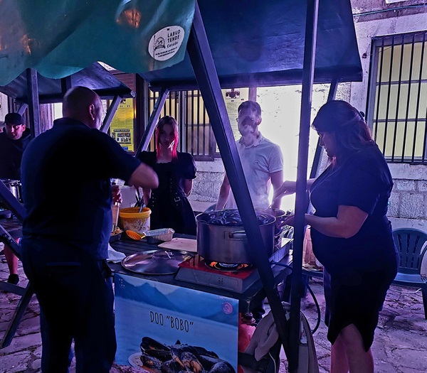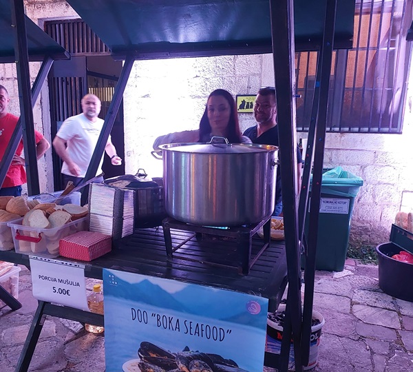 Posjetioci su imali priliku da uživaju u ukusu mušulje na buzaru koje su pripremali članovi Udruženja Marikultura Kotor, uz kotorska vina vinarije Storia di Pietra.