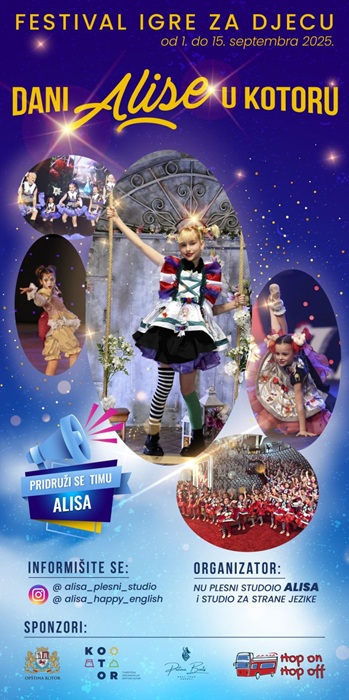 FESTIVAL IGRE ZA DJECU-DANI ALISE U KOTORU OD 1.DO 15.SEPTEMBRA 2025