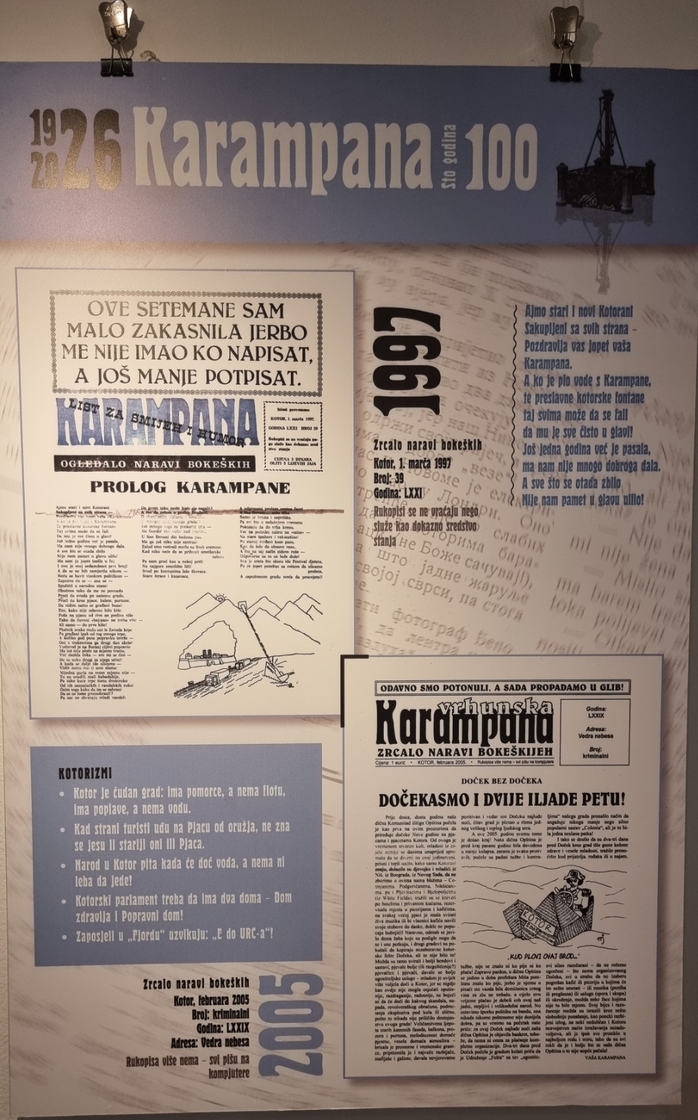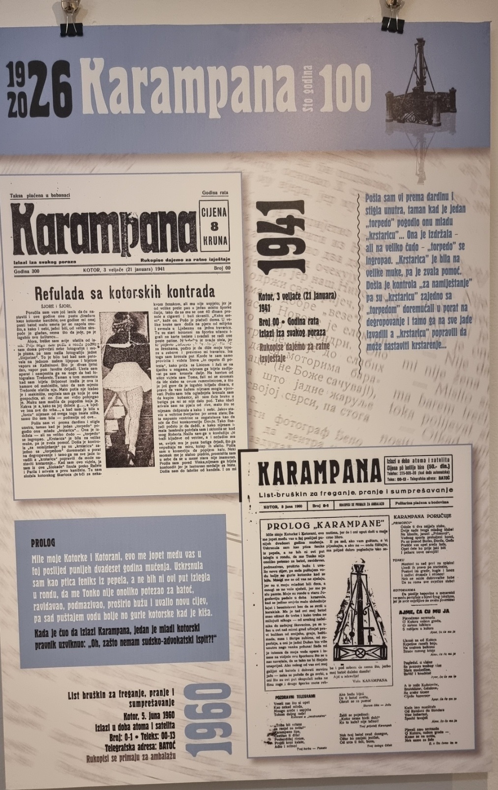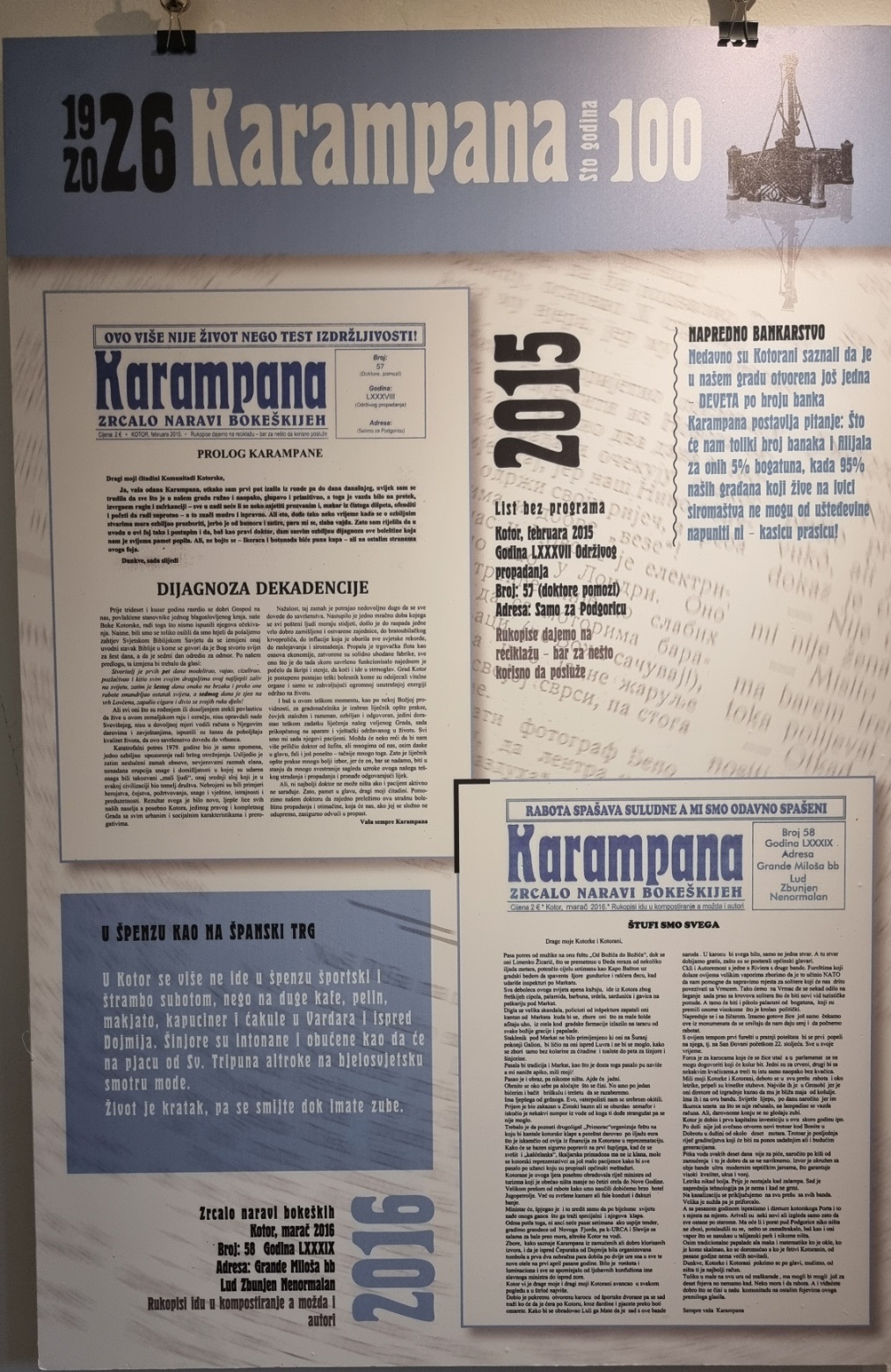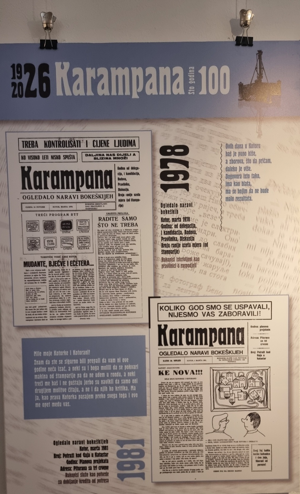 Inače, nakon multimedijalne večeri u Kinu “Boka” i pomenuta izložba postavljena je povodom 100 godina lista „Karampana“.